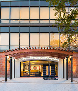 - Con instalaciones de vanguardia para cada forma de medios de comunicación: cine, televisión, Internet, redes de medios sociales, podcasts, streaming video (difusión en continuo), radio, televisión por cable y satélite, y adaptables a cualquier desarrollo futuro en la producción de medios de comunicación.