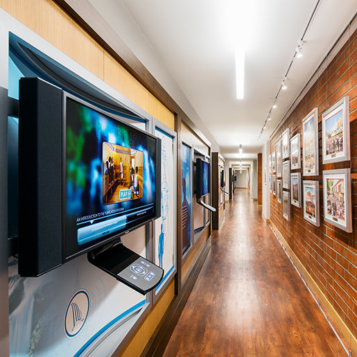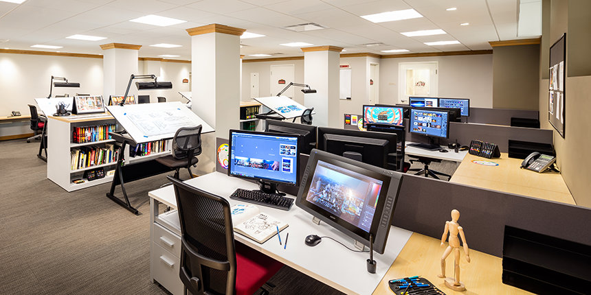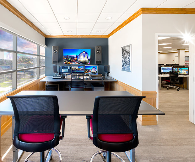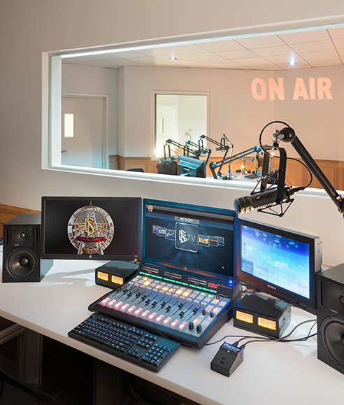 - Con instalaciones de vanguardia para cada forma de medios de comunicación: cine, televisión, Internet, redes de medios sociales, podcasts, streaming video (difusión en continuo), radio, televisión por cable y satélite, y adaptables a cualquier desarrollo futuro en la producción de medios de comunicación.