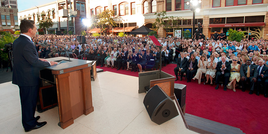 Resaltando la importancia de esta nueva Iglesia tanto para Pasadena como para las comunidades a lo largo del Valle de San Gabriel, el Sr. Miscavige dijo: “Ustedes son parte de un movimiento como ningún otro en nuestra historia, y este es un impulso que va ganando día a día. Pues, con toda sinceridad, estamos dedicados a ayudar a toda la humanidad. En ese aspecto, y sin importar todo lo que abarca y lo englobadora que es Scientology actualmente, que nadie se olvide que la humanidad está compuesta de individuos. Cada uno es único, a su propio modo, y cada uno tiene una historia que nos romperá el corazón, si no haces algo al respecto. Así que toma esta Organización Ideal y saca el máximo partido de ella. Puesto que, sí, hay en verdad un montón de ayuda que debemos ahora llevar a efecto. Y esa es la promesa que hacemos hoy, para la ciudad de Pasadena”.