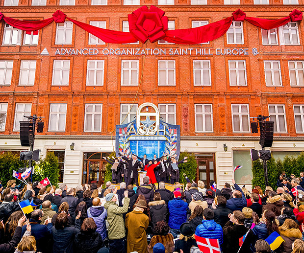 Ese era el escenario a lo largo de la calle Jernbanegade de Copenhague para la dedicación de la nueva Puerta de Entrada Ideal Europea a OT: la Organización Avanzada Ideal y Saint Hill de Europa (AOSH EU).