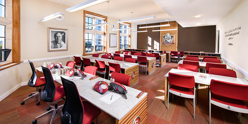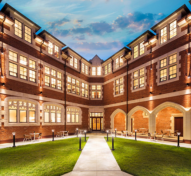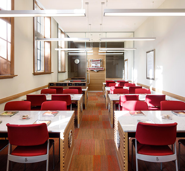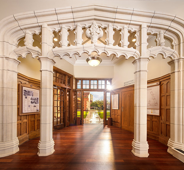 Desde el ladrillo rojo y el tejido de piedra blanco utilizado a lo largo de la fachada, a la restauración de la delicadeza del terminado de roble en la entrada y la biblioteca y la preservación de los paneles de madera de rimu y el suelo de madera de jarrah, señaló, el trabajo que ha hecho destacar a la instalación como una obra de arte en sí.