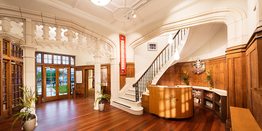 Con vistas a la ciudad y el magnifico puerto de Auckland el Waitemata, el sitio histórico local y anhelado monumento histórico, preservado y restaurado por la Iglesia en cooperación con arquitectos locales y conservasionistas, es una resurrección de lo que alguna vez fue el hogar de entrenamiento espiritual para el clero y eruditos religiosos durante casi medio siglo.