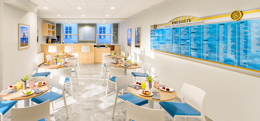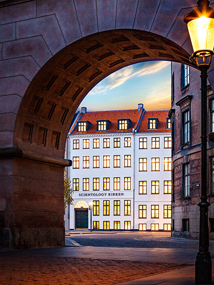 La nueva Iglesia de Scientology de Dinamarca se erige cinco pisos de altura y está a solo unos pasos de la calle Strøget, donde 75 000 peatones pasan cada día. Como tal, sirve como una central de la ciudad para un número de iniciativas humanitarias que han ganado el respeto de la comunidad cívica de Copenhague.
