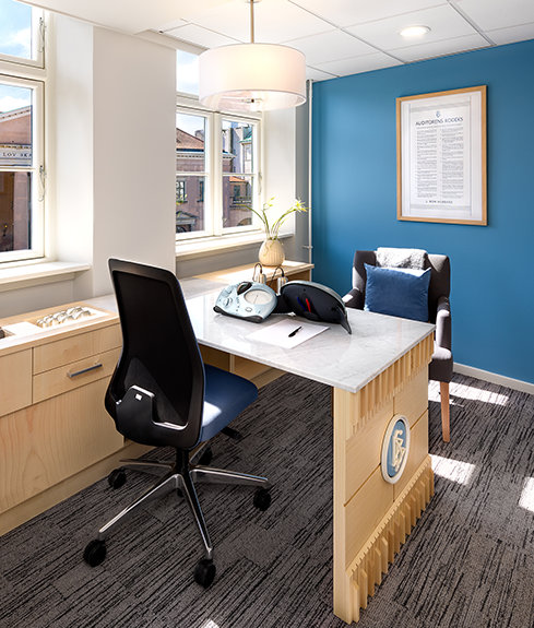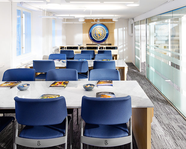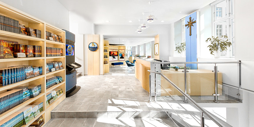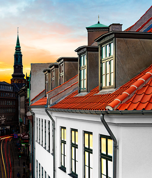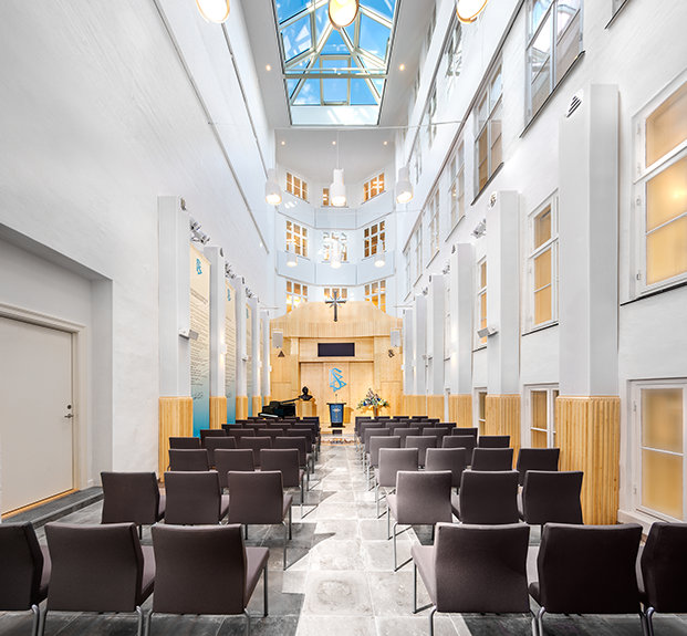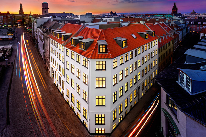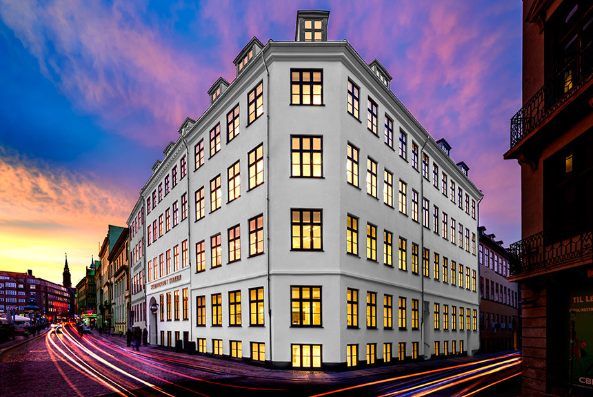La Iglesia remodeló, restauró y renovó su nuevo hogar en el centro de Copenhague. En 3 700 metros cuadrados, este edificio Neoclásico fue construido originalmente en 1796 y nació de las llamas del “Gran Fuego” que solo un año antes había consumido al distrito de Nytorv/Gammeltorv. De hecho, la planificación de la ciudad ordenó la distintiva “esquina rota” en la fachada del edificio para permitir el acceso a las escalera largas de los bomberos en las calles estrechas de la ciudad.