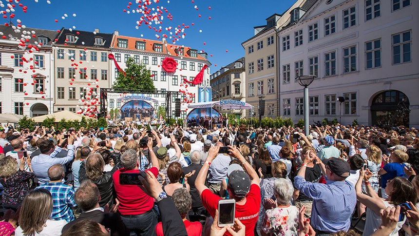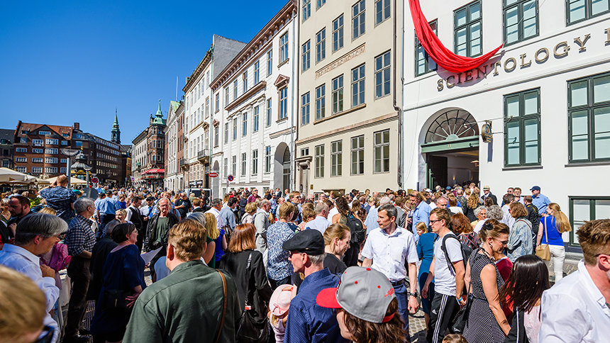 Y así fue, en una tarde gloriosa danesa, más de 2 500 Scientologists e invitados se reunieron en la plaza de adoquines para celebrar una nueva página en la historia de una de las capitales escandinavas más antiguas y ricas culturalmente y el siguiente paso en la temporada de expansión de la Iglesia.