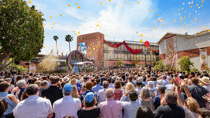 Momento en el cual el Sr. Miscavige cortó el gran listón e inauguró Scientology Media Productions para el mundo.