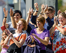 Con exacta pasión, la celebración de la inauguración comenzó con una canción tradicional y danza; un tributo a la herencia cultural de Stuttgart y su orgullo como una líder nacional en las artes escénicas. La música entonces cambió a un ritmo de rock y pop mientras un canto conmovedor llenó el aire: “Aquí está para nosotros, desde ahora y para siempre”. Ese espíritu de esperanza y expectativa se transmitió a través de las declaraciones de los dignatarios locales que hablaron sobre el impacto que este nuevo centro tendrá cuando ayude a Stuttgart a enfrentar un montón de problemas.