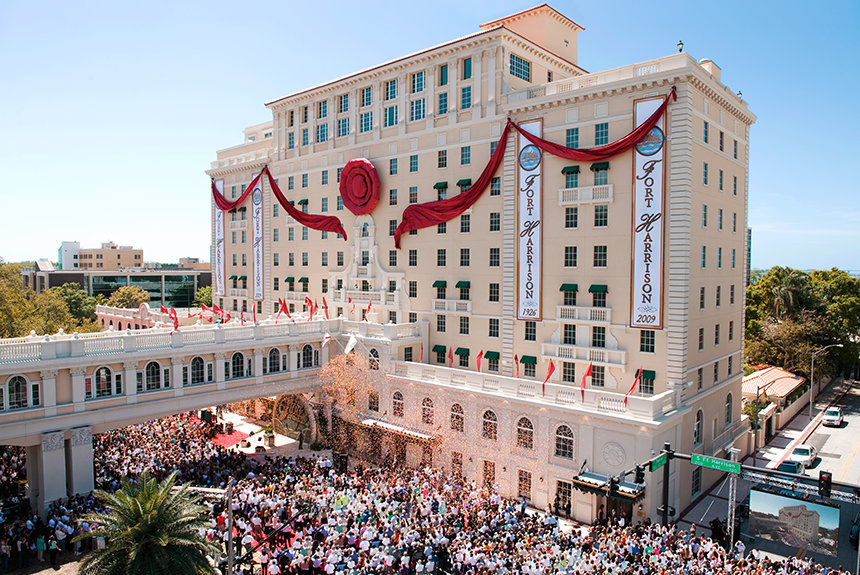 "Su estructura estaba en buenas condiciones, su ambiente impecable y su elección como residencia no podía haber sido más adecuada: Clearwater, Florida", comenzó diciendo el Sr. Miscavige cuando se estaba dirigiendo a los allí reunidos. "Cuando fue abierto por primera vez en 1926, le llamaban ´la aristocracia de los hoteles del sur de Florida´ y lo describían como un 'edificio pintoresco' conocido por todos de costa a costa, como algo admirable de esta ciudad y un centro siempre animado para recepciones de bodas, desfiles de moda, partidas de cartas a la hora del té y funciones del Club Rotario.