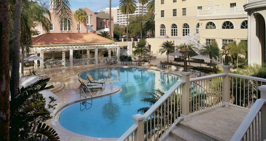 La restauración de las características distintivas del histórico edificio comenzó en el elegante Grand Lobby, desde las originales barandillas de hierro forjado y bronce hasta el suelo de mármol en forma de tablero de ajedrez y las columnas corintias de hojas doradas. Y en la parte superior del Fort Harrison, el legendario Salón de Baile Crystal también recibió una restauración completa hasta llevarlo más allá de su belleza original.