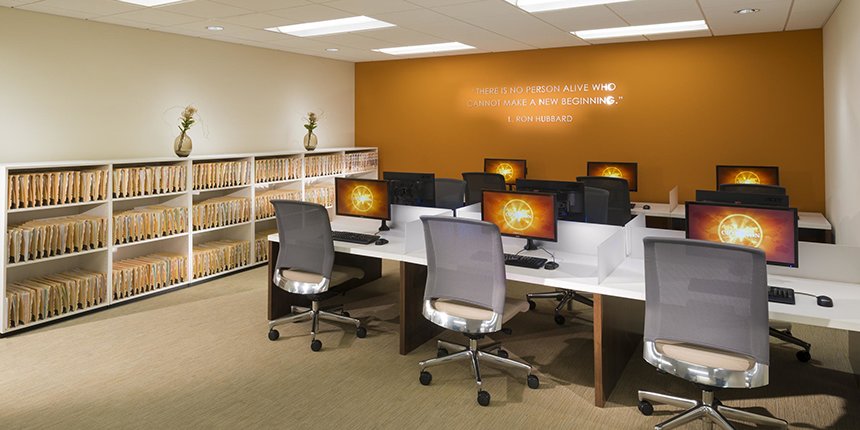 Exhibidores de información en la nueva sede central proporcionan a los visitantes los detalles claves del programa y su implementación. La instalación también incluye una sala multiuso para la entrega de seminarios y talleres de Criminon, mientras que una sección completa está dedicada a un centro de cursos por correspondencia.