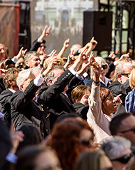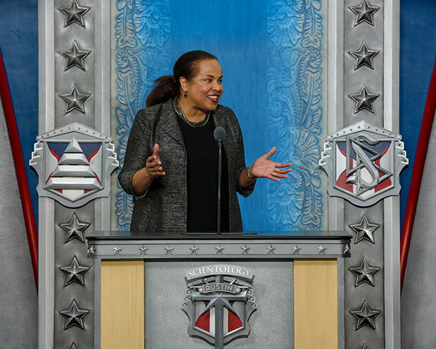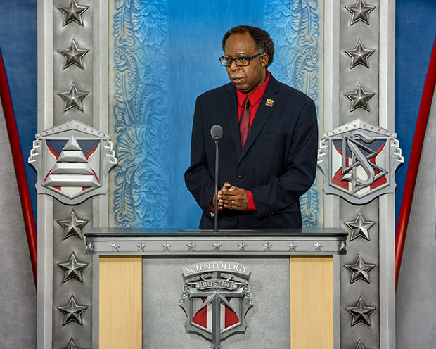 Liderando la celebración de la Gran Inauguración estuvo el Sr. David Miscavige, líder eclesiástico de la religión de Scientology, quien les dio la bienvenida a los Scientologists del Estado de la Estrella Solitaria con un reconocimiento de su propósito y orgullo.