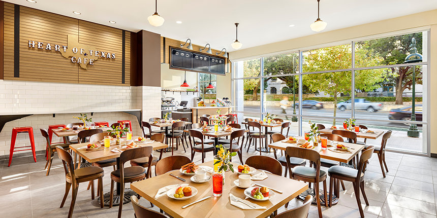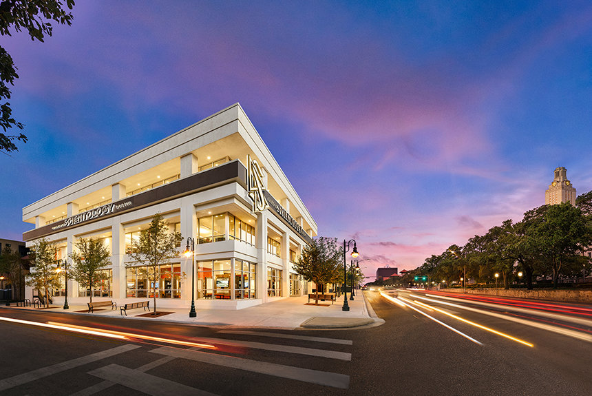 La magnífica nueva Iglesia de Austin se encuentra justo al otro lado de la calle de la Universidad de Texas, en The Drag, donde hasta 70 000 personas caminan por el bullicioso tramo cada día. Comenzando hoy, los ventanales de la Iglesia del piso al techo a nivel de la calle invitan a los transeúntes a entrar, mirar, escuchar y disfrutar de la Libertad Espiritual de Texas.