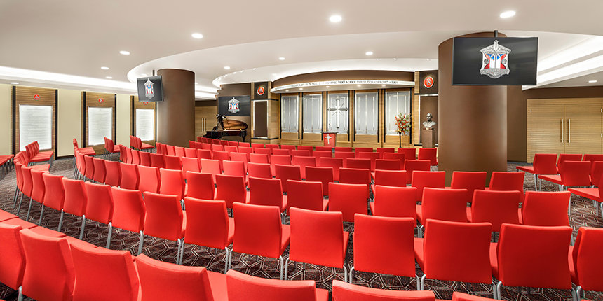 La Capilla de la Iglesia facilita las reuniones congregacionales de Scientology, incluyendo los Servicios Dominicales, Bodas y Ceremonias de Nombramiento, así como eventos comunitarios abiertos a miembros de todas las religiones en nombre de la colaboración comunitaria. La nueva Iglesia también incluye múltiples salas para seminarios y salas de curso, además de una ala de habitaciones para la auditación (asesoramiento espiritual) de Scientology.