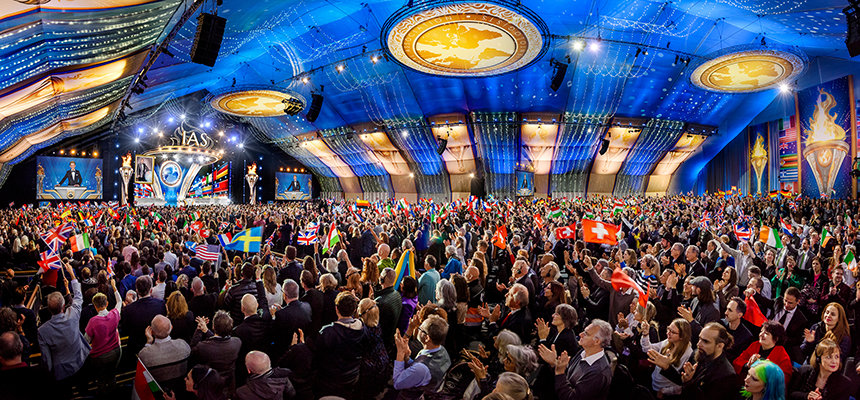Miembros de la Asociación Internacional de Scientologists (IAS) que representan a 90 naciones se reunieron en East Grinstead, sur de Inglaterra, para una celebración de fin de semana honrando cuatro años históricos de dedicación, determinación y logro.