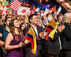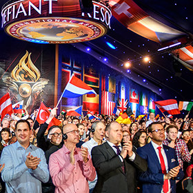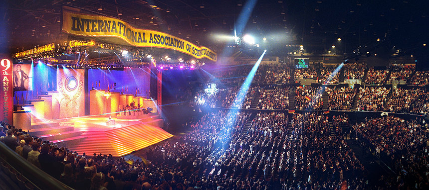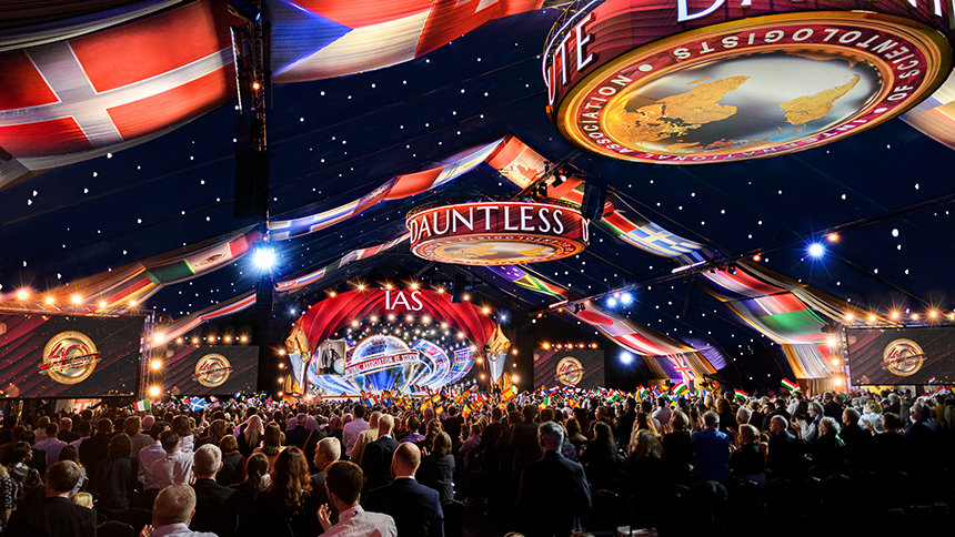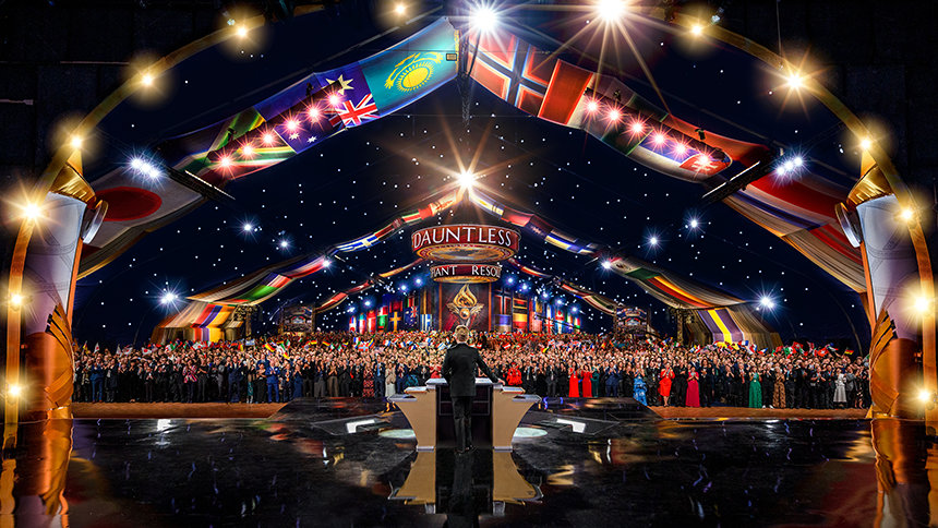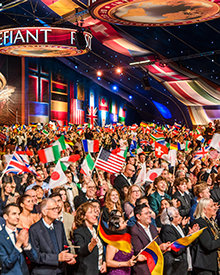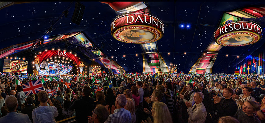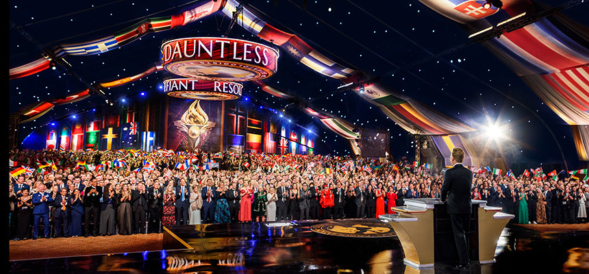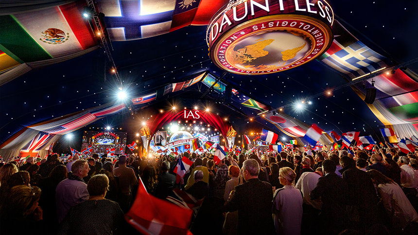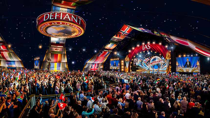 A medida que la congregación mundial atravesaba la vibrante alfombra de color rojo rubí se deleitó en la enorme Gran Carpa y casi hizo volar el techo cuando el Sr. Miscavige llegó al escenario dando una ovación ensordecedora que duró minutos. Era una expresión no solo de admiración para el líder de Scientology sino un reconocimiento de la enormidad de la celebración en cuestión.