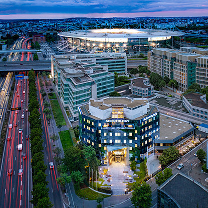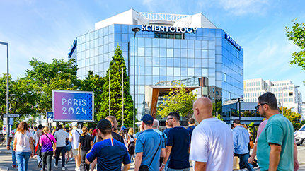 La Org Ideal de París y Centro de Celebridades, una nueva obra maestra de 8800 metros cuadrados, abrió en abril del 2024, pocas semanas antes de los Juegos Olímpicos de Verano. “No solo era perfectamente oportuno, sino que estábamos perfectamente ubicados a lo largo del camino peatonal principal hasta el Stade de France”, dijo el Sr. Miscavige. El nuevo hogar de la Iglesia de París fue visto diariamente por 60 000 curiosos aficionados olímpicos, llenando el centro de información durante las dos semanas de los Juegos y concluyendo con la Ceremonia de Clausura a solo unos pasos en el Stade de France, marcando una celebración perfecta para la nueva torre de la victoria de la Iglesia en la Ciudad de la Luz.