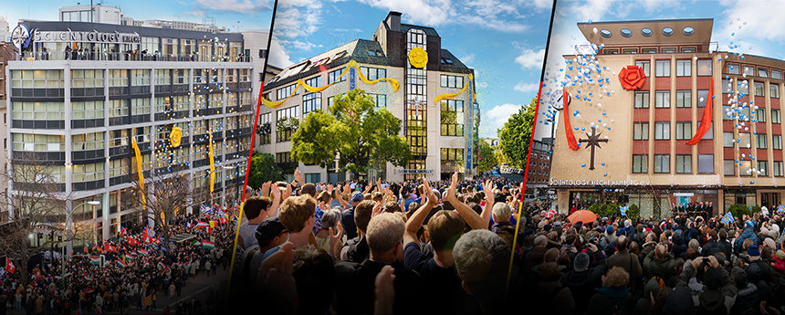 • En España, donde Scientology prevaleció después de años de opresión, ganando vindicación total y reconocimiento religioso: victorias que ahora están marcadas por una Iglesia Ideal en el lugar donde está el gobierno español en Madrid;