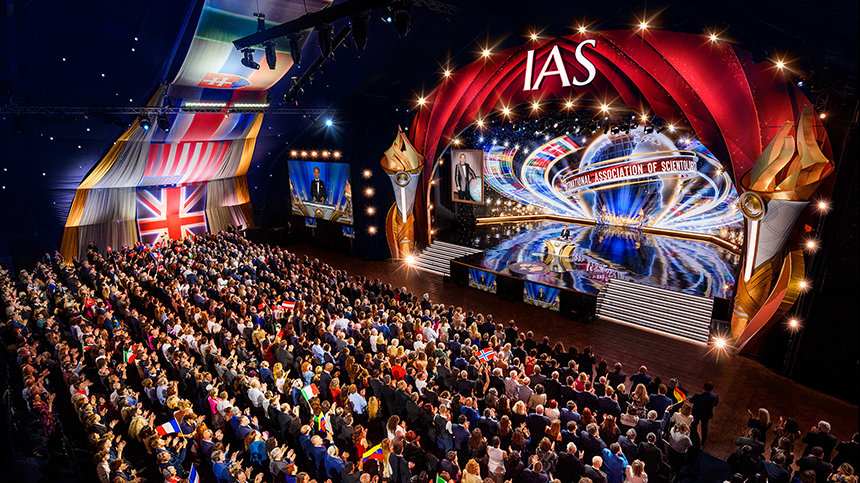 “Esta noche celebramos 40 años de la historia de la IAS”, dijo el Sr. Miscavige, “que equivale a 4000 años en cualquier otro libro de historia”. Hasta ese momento, en el nacimiento de la IAS en 1984, la presencia de Scientology abarcaba 39 naciones. Mientras que hoy, el Sr. Miscavige presentó el hecho de que hay miembros de la IAS en 184 naciones.