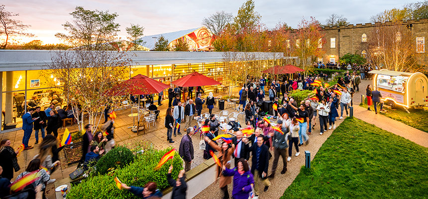 Todo comienza en una fresca noche de otoño, a medida que las alegres notas de la Great Highland Bagpipes cortan el aire mientras el estrépito de los cascos de los caballos se mezcla con el taconeo de los zapatos de tacón alto y el sonido retumbante de una banda de percusión en los torreones del castillo.