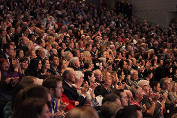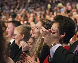 “Nunca ha sido mas notoria” la concurrencia de scientologists, dijo el señor Miscavige. “Nunca más abiertamente evidente. Nunca ha estado más cerca de la consciencia de 7 mil millones de personas en la Tierra. Así que, sin exagerarlo, sin llevarlo más allá del límite, pero la verdad es que LRH está en todas partes esta noche”.