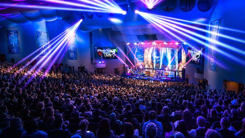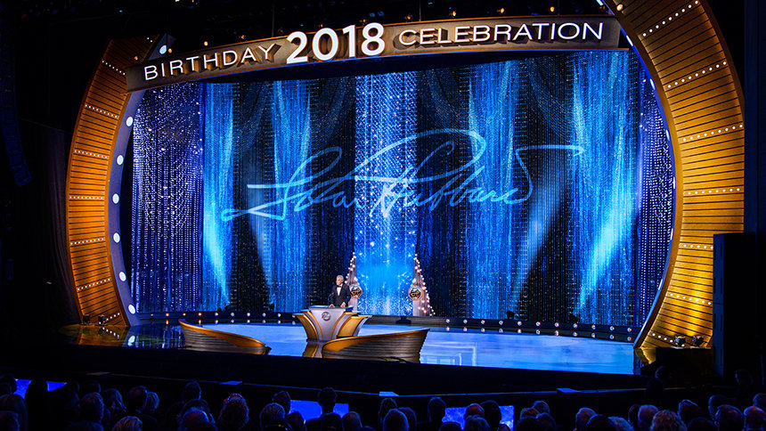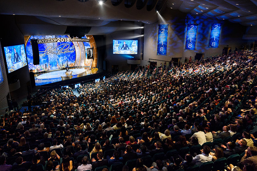 Y así comenzó la noche, con una electrizante anticipación y el clamoroso saludo para el líder eclesiástico de Scientology, el Sr. David Miscavige: “Sí, de hecho, esta Celebración del Cumpleaños es algo nunca antes visto… Este magnífico momento de nuestra historia, esta noche, esta hora, este instante cuando digo: esto es Scientology hoy en día. Y suponiendo que captas lo que ahora tenemos en términos de excelencia técnica y sus recursos, bueno, no puedes negar que estos son tiempos legendarios. En consecuencia, es lógico que ahora regresemos a donde comenzó esa leyenda”.