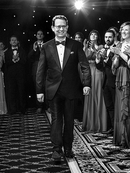 La atmósfera estaba rebosante de anticipación y cuando el Sr. David Miscavige, líder eclesiástico de la religión de Scientology, entró, la multitud se puso de pies dándole la bienvenida con una ensordecedora ovación que siguió… siguió… y siguió.