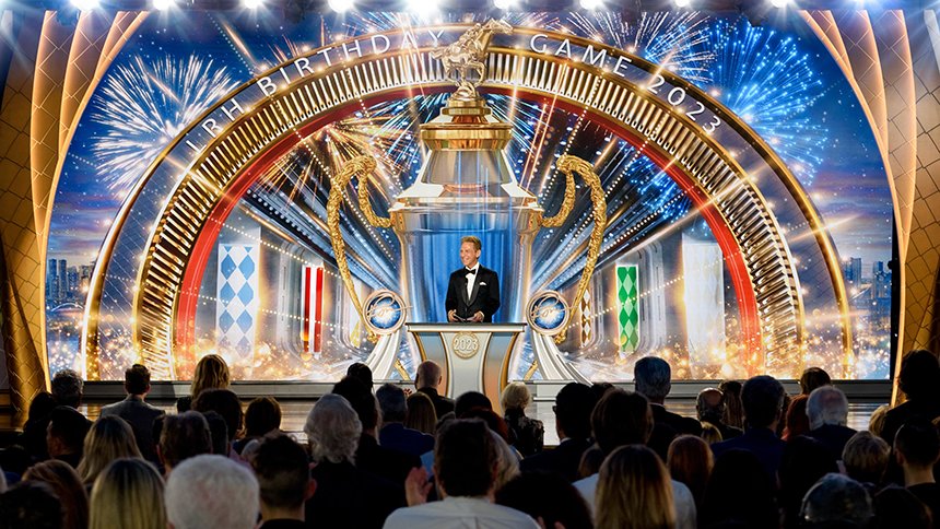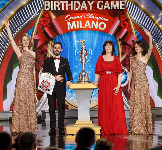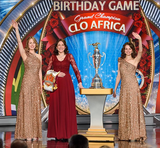 Luego llegó el momento de anunciar a los campeones del Juego de Cumpleaños de LRH. El escenario se transformó en un círculo de ganadores rodeado de rosas, con brillantes luces, sedas y trofeos relucientes. El Juego de Cumpleaños sigue la tradición de honrar al Sr. Hubbard con el regalo de la expansión en cada Iglesia de Scientology.