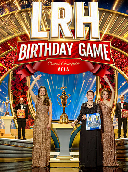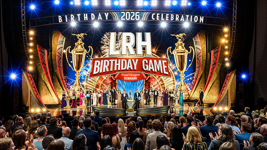 El impulso de la velada se fue construyendo de manera constante hacia uno de los momentos cumbre más esperados: el Juego de Cumpleaños de LRH anual, una carrera global entre las organizaciones de Scientology para impulsar la expansión. Este concurso internacional lleno de entusiasmo abarcó seis continentes y decenas de ciudades. Unió a Misiones, Organizaciones, Organizaciones Avanzadas y Oficinas de Enlace Continental de Scientology en una carrera para cumplir el único deseo de LRH: la Expansión en nombre de un Planeta Clear.