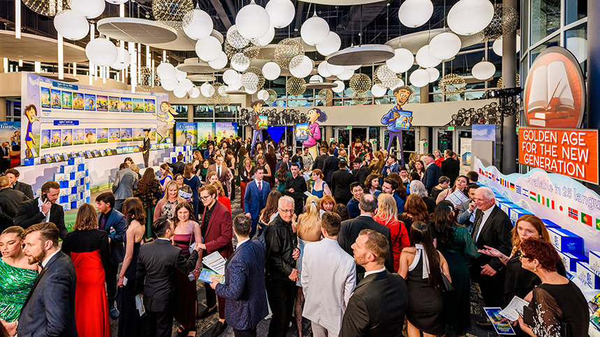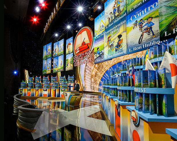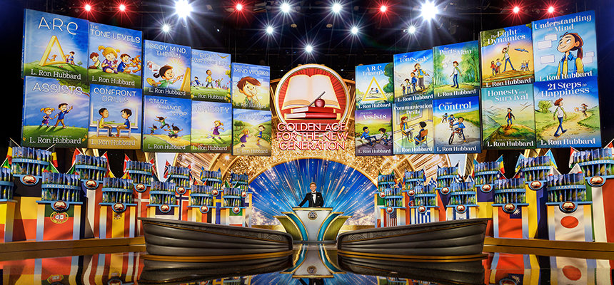 “Y ahora llegamos al momento culminante de este Evento de Cumpleaños”, dijo el Sr. Miscavige. “Porque esta noche marca el comienzo de otra Edad de Oro”. Habiendo sentado las bases para las Edades de Oro del Conocimiento, la Tecnología y la Administración de Scientology, se dirigió a lo que quedaba como el siguiente paso hacia adelante. Con eso, presentó algo sin precedentes: los Libros de Scientology para Niños que presentan los principios básicos de Scientology —totalmente ilustrados— dando vida a cada principio para la nueva generación.