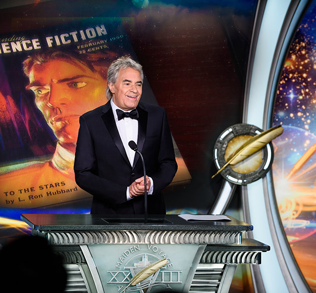 “En primer lugar, LRH fue un autor”, dijo el Sr. Miscavige al hacer la introducción de la encantadora presentación de la velada en honor al legado del Sr. Hubbard.