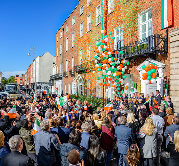 - Y el 15 de octubre, el corte de listón de una Oficina de Asuntos Nacionales de Scientology en la icónica Merrion Square de Dublín, un edificio Georgiano impresionante para la entrega permanente de los programas de mejora social apoyados por Scientology en la Isla Esmeralda.