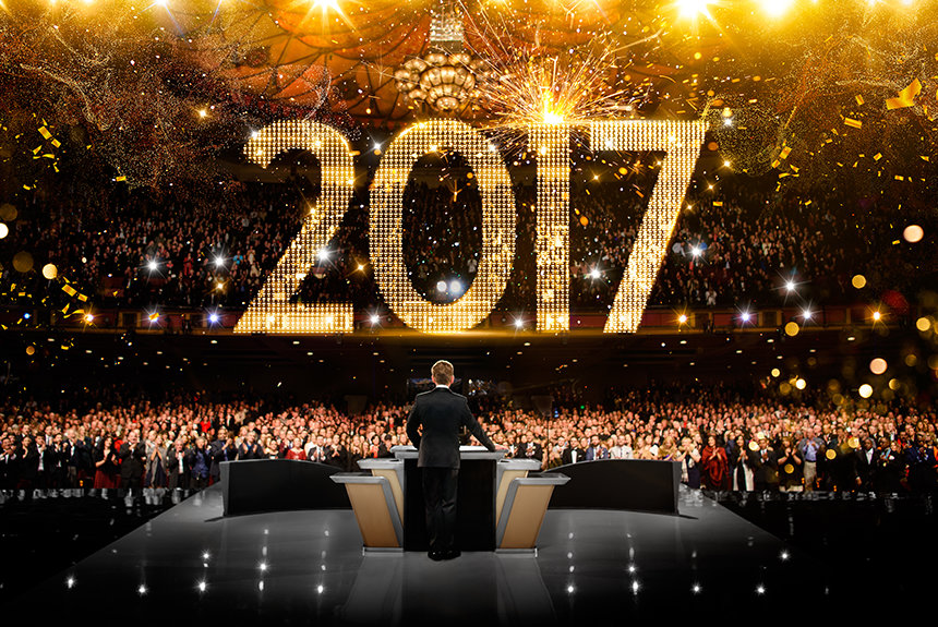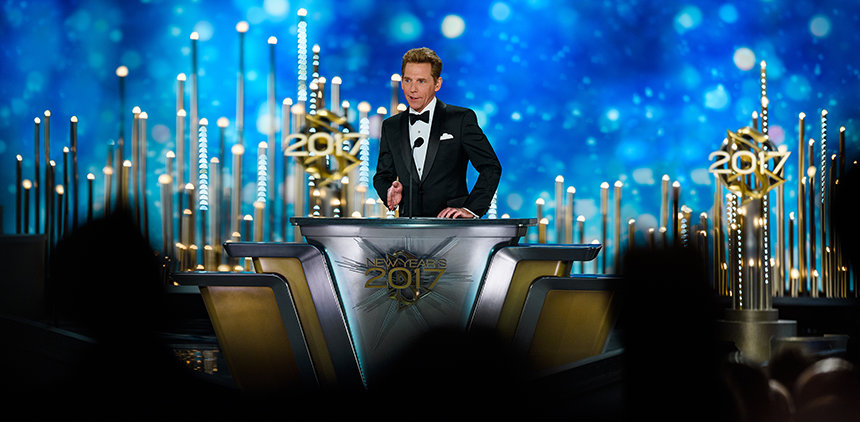 Y con eso, el Sr. Miscavige lanzó la celebración de Año Nuevo de este año, una apasionante visión general de 2016 dicha en términos de historias ilustrativas abarcando 38,000 kilómetros del mundo de Scientology.