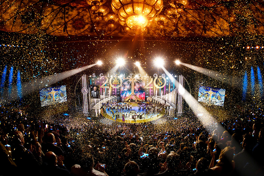 Más allá de los rascacielos brillantemente iluminados haciendo de Los Ángeles el paisaje urbano, el foco de atención brilló sobre el famoso Auditorio Shrine donde los Scientologists se reunieron para celebrar una década récord: