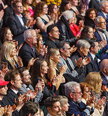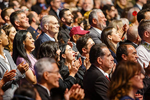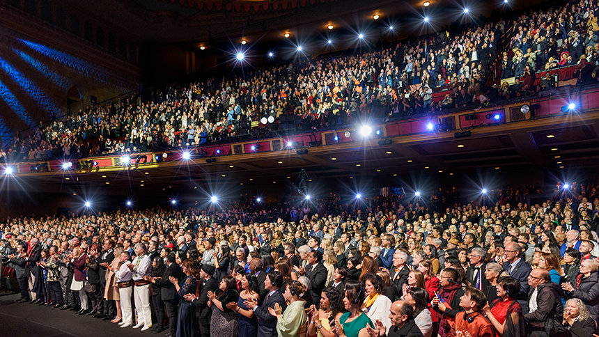 Los aplausos reverberan por todo el auditorio mientras la Celebración de Año Nuevo muestra un logro tras otro.