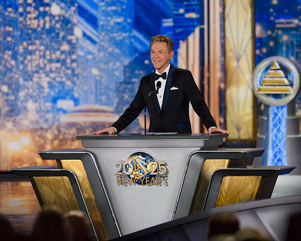 El evento comenzó con un concierto repleto de estrellas que puso a la audiencia de pie. La anticipación aumentó cuando columnas de luces brillantes enmarcaron el escenario y un 2025 gigante descendió de las vigas.