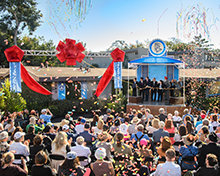 Para culminar la celebración con una declaración de expansión, el Sr. Miscavige revela los resultados de los equipos ejecutivos más recientes en la Edad de Oro de la Administración.