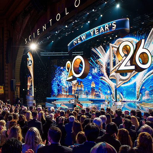 “Para la mayor parte del mundo, el Año Nuevo es algo que esperan. Cuentan los segundos, viendo el reloj como si el tiempo fuera el que les dijera cuándo la vida comienzade nuevo. Pero nosotros nunca hemos vivido el tiempo de esa manera. Mientras el resto del planeta quizá sigue bajando el ritmo de sus relojes, nosotros estamos aquí por algo completamente diferente: para ver qué sucede cuando un año completo de logros de Scientology se desata de una sola vez”. —Sr. David Miscavige, líder eclesiástico de la religión de Scientology