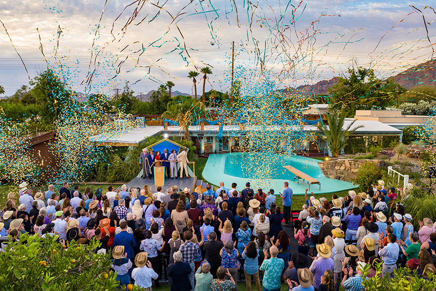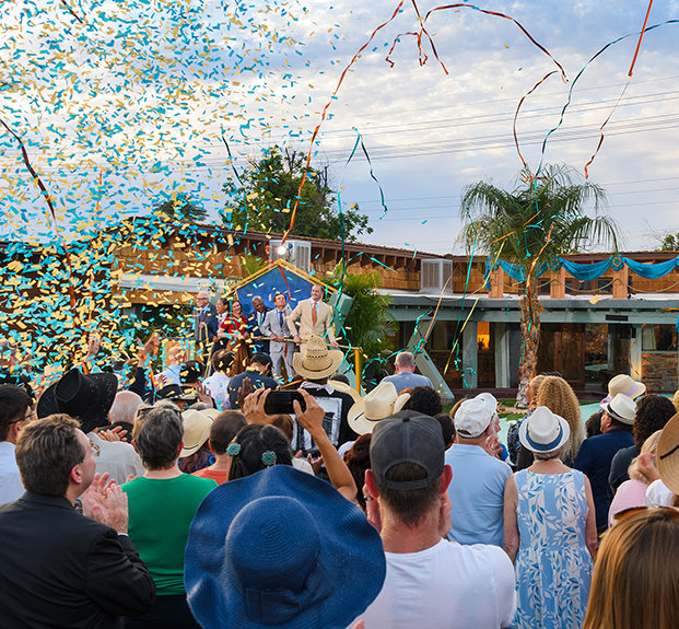 En una cálida tarde de sábado en el desierto, ese edificio histórico se abrió de nuevo, renacido como un Sitio Histórico de L. Ronald Hubbard. Un lugar de importancia internacional, aquí es “donde el futuro cambió para siempre”, dijo el Preservacionista de la Iglesia de Scientology, quien ofició el evento y supervisó la restauración histórica del sitio.