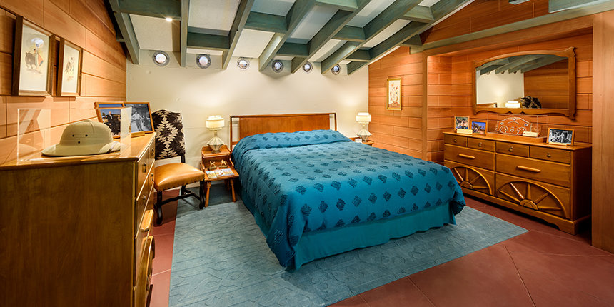También se exhiben artículos personales, como el órgano de acordes Hammond S4 que el Sr. Hubbard disfrutaba tocar y su consola estéreo Coronado, que llenaba el aire con valses y jazz. En el exterior, incluso la Harley-Davidson Hydra-Glide azul glaciar y su Chevrolet Deluxe Station Wagon de 1951 han sido restaurados a su gloria vintage original.
