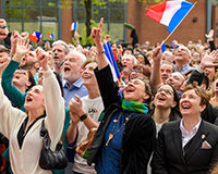 “Como ciudadano de Francia, sin duda considero un deber y un honor continuar con este legado de derechos humanos. Y su tradición de servicio incluye entregar nada menos que 400 000 folletos de Derechos Humanos a las plazas de las ciudades, a las estaciones de tren y por toda Francia. Con sus acciones en nuestras comunidades, están ayudando a crear una sociedad que no sea egoísta, sino una en la que la gente se respete mutuamente”.